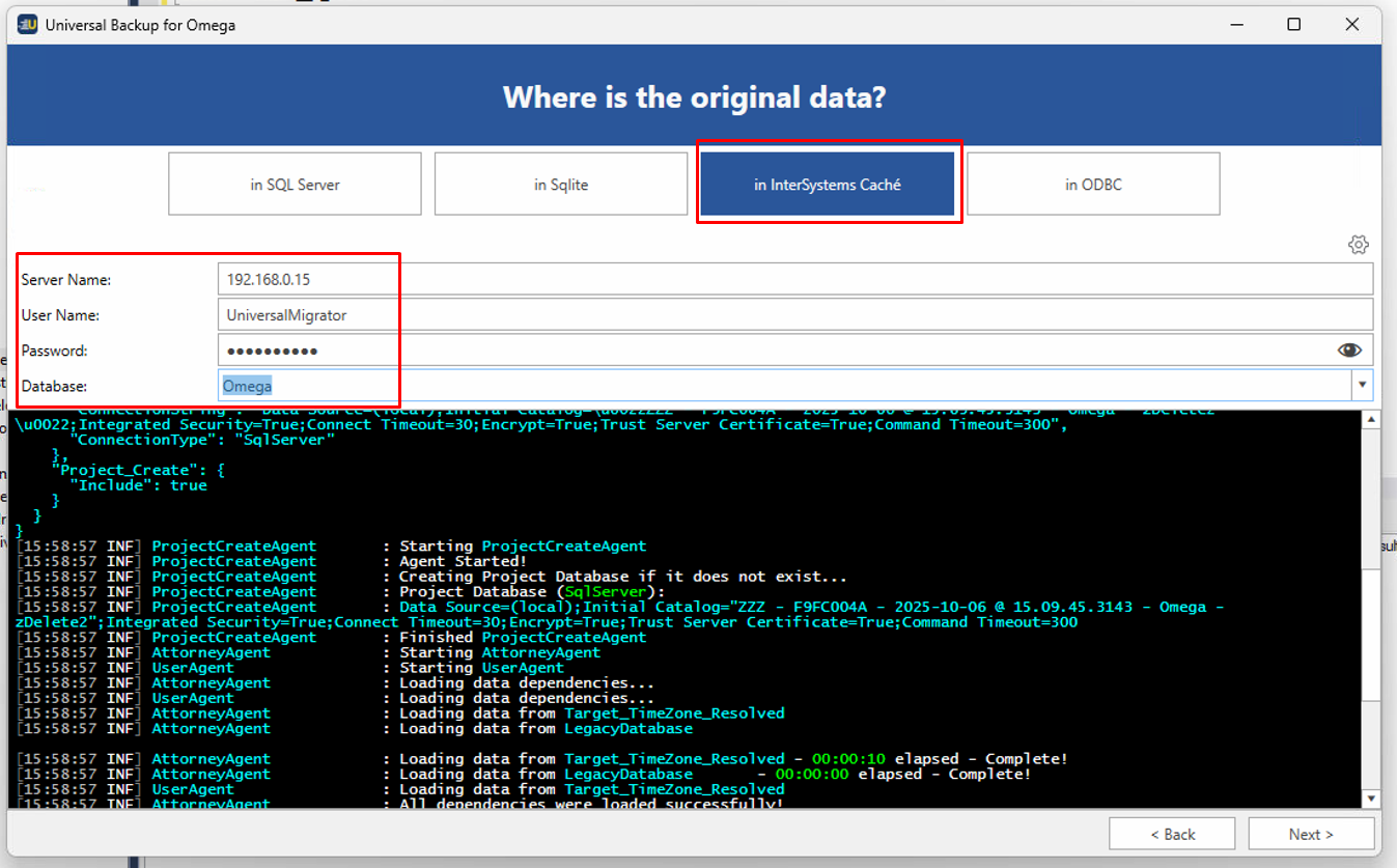 When connecting Universal Migrator to a Cache' database/namespace, you will need to enter the following information into the "Original Data" screen: