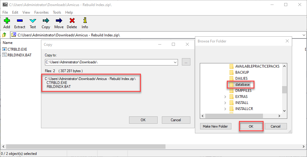 - Extract the Amicus - Rebuild Index.zip to the "database" folder in your Amicus Small Firm Database.