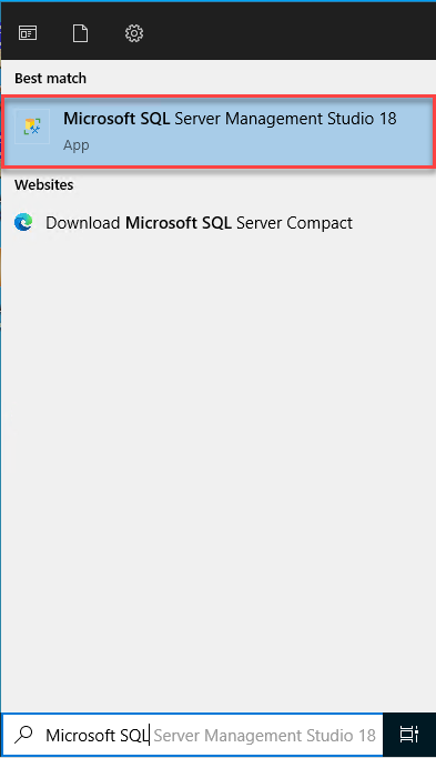 - Open SSMS in your virtual machine.