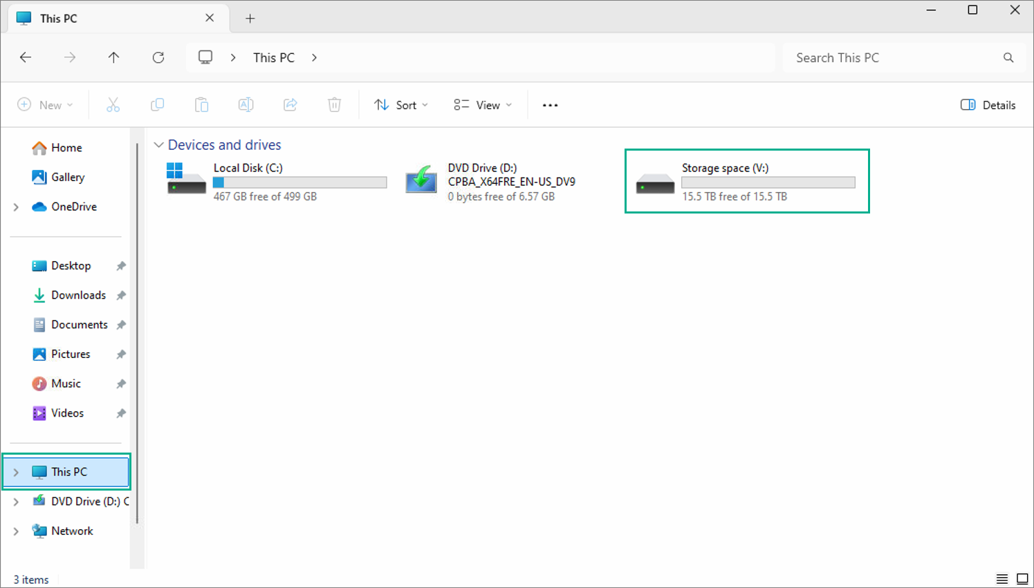 Open a new Windows Explorer window and click on This PC, you will now see your new drive ready for use.