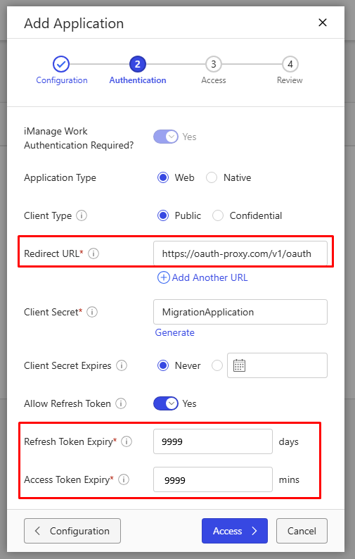 If the Refresh/Access token values are set beyond the specified limits, iManage may not allow them to refresh which will result in the user becoming logged out after a period of time.