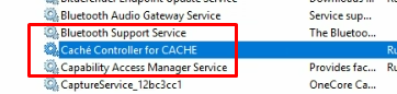 To log into Cache', first connect into the Cache' database server. You can verify you are on the correct server by opening Windows Services and verifying that the "Cache' Controller for CACHE" service is running: