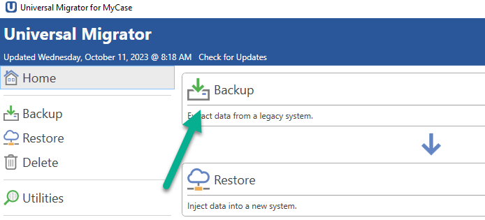 The following instructions will take you through each step required to create a Universal Database backup of PC Law data.