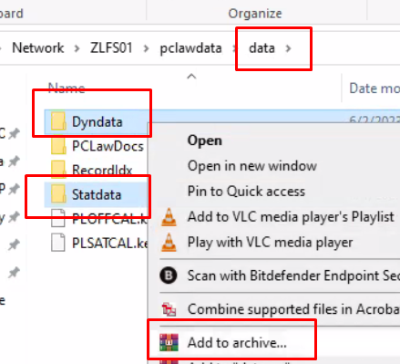 To find out where the PC Law data exists, find a PC Law shortcut, right-click on it, and choose "Open File Location".